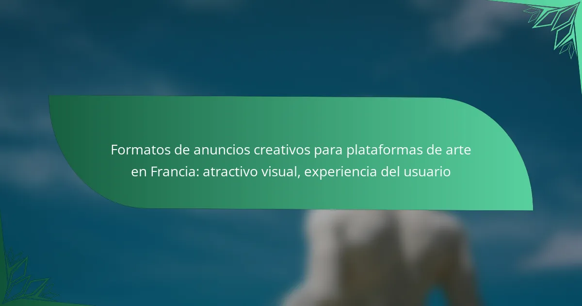 En el competitivo panorama de las plataformas de arte en Francia, aprovechar formatos publicitarios creativos es esencial para captar la atención del público y mejorar la experiencia del usuario. Formatos como anuncios interactivos, anuncios en video y anuncios de realidad aumentada no solo elevan el atractivo visual, sino que también fomentan un compromiso más profundo con los entusiastas del arte y los coleccionistas. Al utilizar estos enfoques innovadores, las marcas pueden conectarse de manera efectiva con su audiencia y aumentar las tasas de satisfacción y retención.