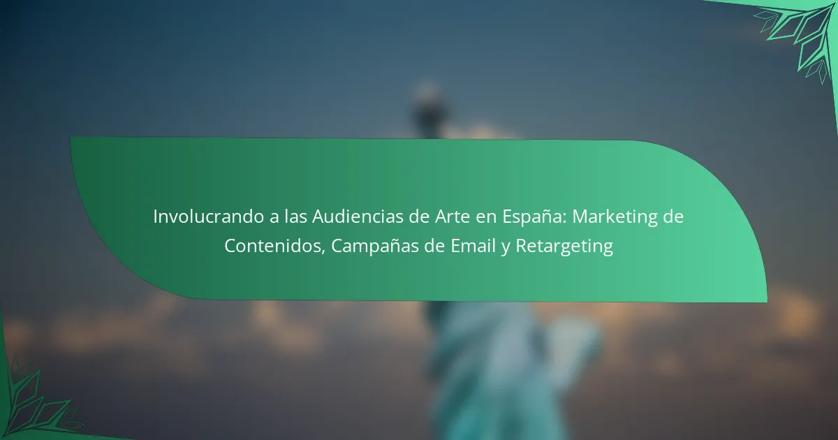 Involucrar a las audiencias artísticas en España requiere una combinación de estrategias de marketing digital y una comprensión de las sutilezas culturales locales. Al utilizar marketing de contenidos, campañas de correo electrónico dirigidas y técnicas de retargeting, las instituciones artísticas pueden fomentar conexiones significativas con sus audiencias y mejorar su experiencia general con las artes.