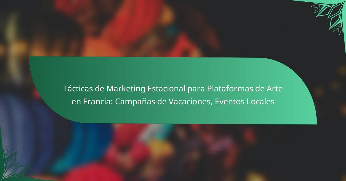 Las tácticas de marketing estacional para plataformas de arte en Francia pueden mejorar significativamente el compromiso y las ventas al alinear las campañas con la cultura local y las tradiciones festivas. Al crear experiencias personalizadas y participar en eventos comunitarios, las plataformas de arte pueden construir conexiones más sólidas con su audiencia y aumentar la visibilidad durante los períodos clave de vacaciones.
