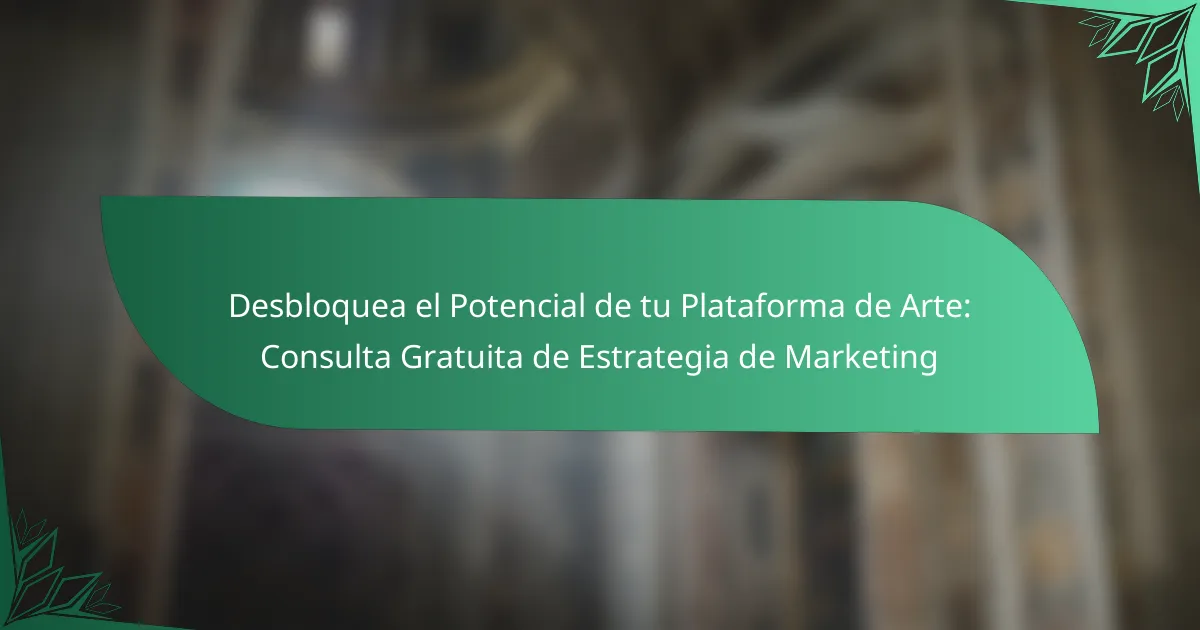 Una consulta gratuita de estrategia de marketing puede mejorar significativamente tu plataforma artística al proporcionar información adaptada y estrategias accionables para mejorar la visibilidad y el compromiso. Esta consulta ayuda a identificar las fortalezas únicas de tu plataforma y áreas de crecimiento, lo que lleva a esfuerzos de marketing más efectivos.